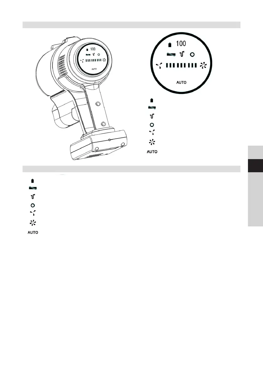 Auto suction strength control - The suction strength is controlled automatically (depending
