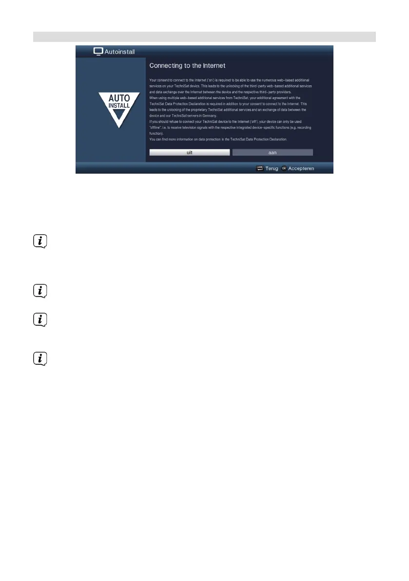 De verbinding met internet en de privacyverklaring kunnen op elk gewenst