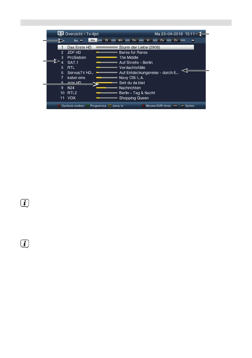 3: Voortgangsbalk resp. start-/stoptijd van de weergegeven uitzending.