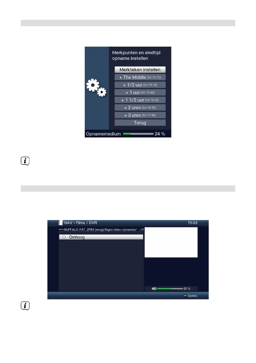 > Door tijdens een opname op de toets Opnemen te drukken wordt een venster