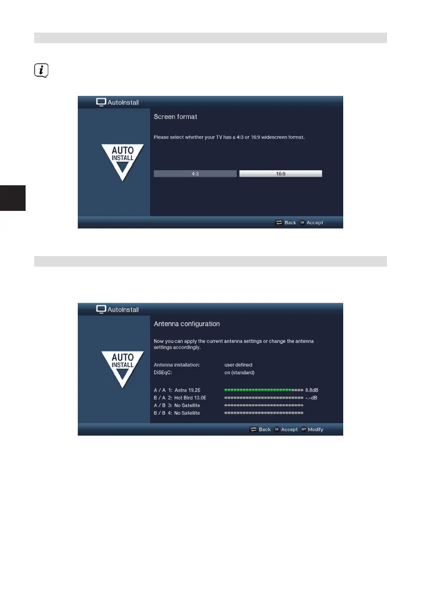 > If you wish to accept the standard antenna seing, press the OK buon.