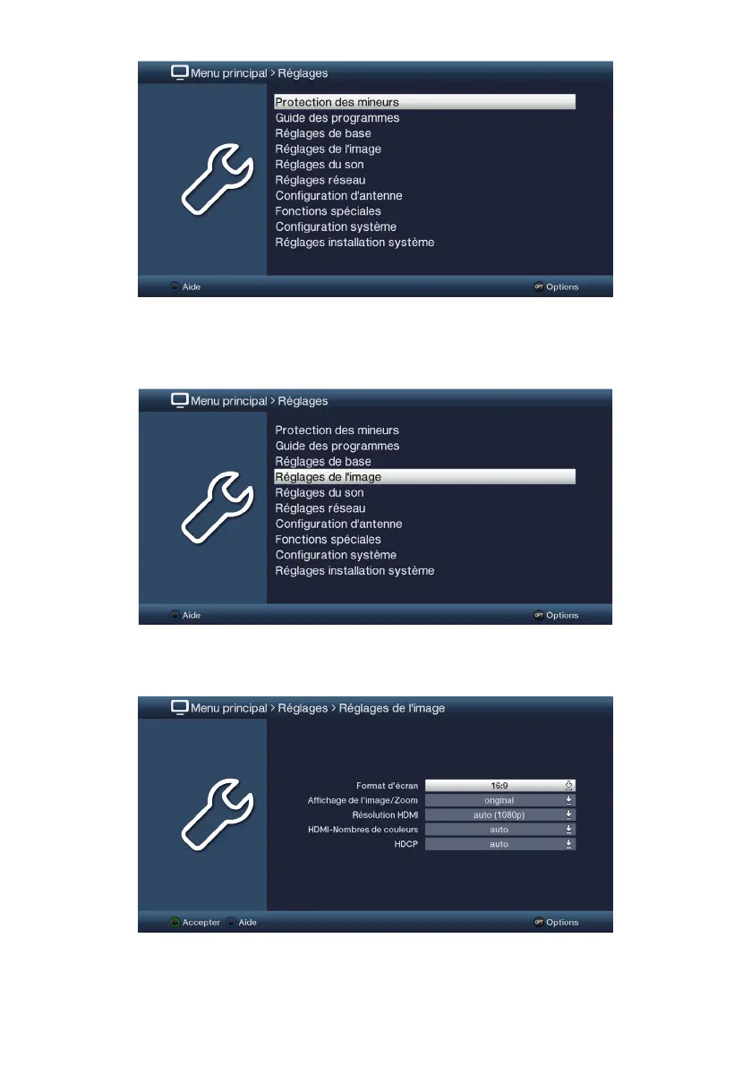 > Confirmez au moyen de la touche OK, le menu Réglages de l’image s’ache.