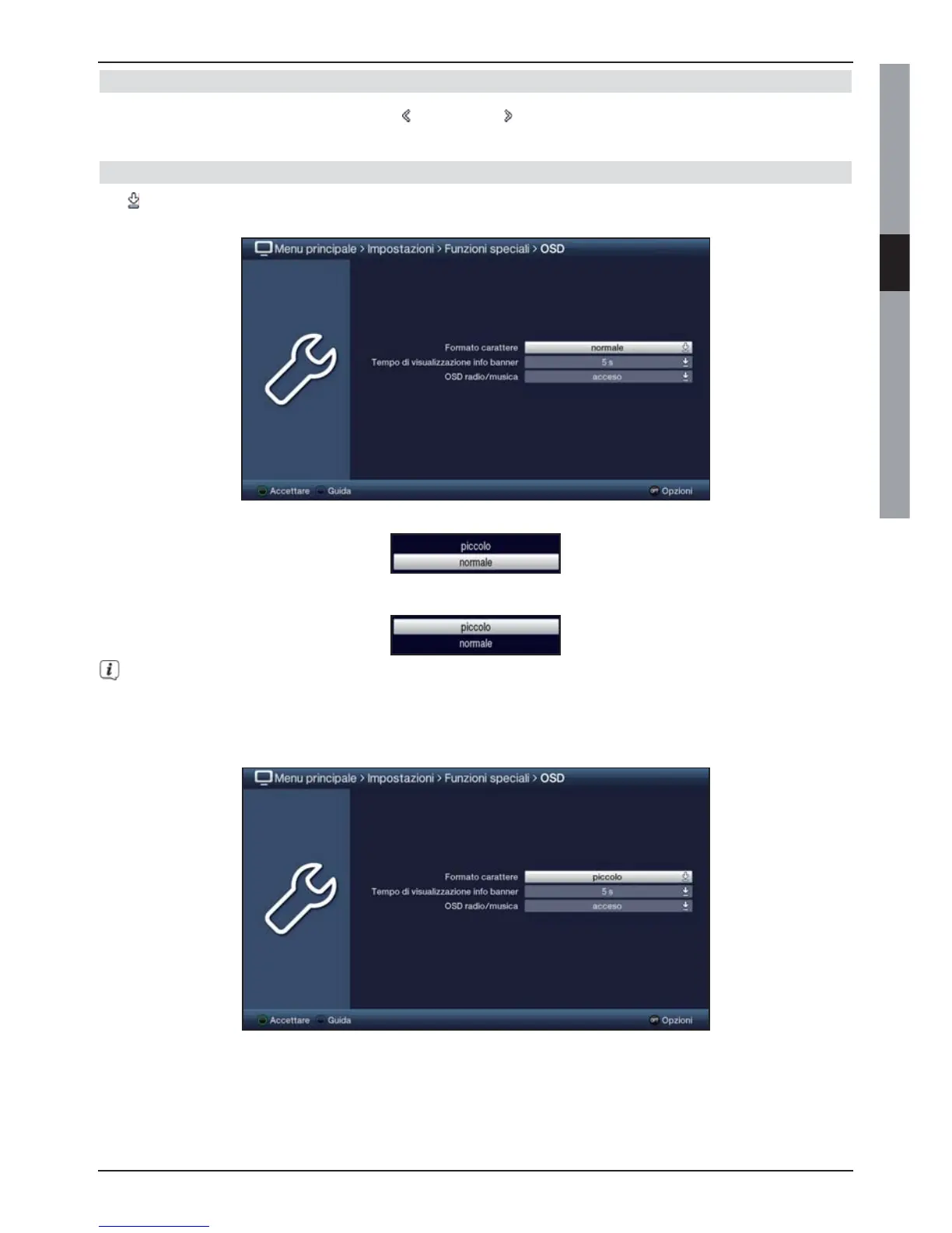 > Selezionare l'impostazione desiderata con i tasti freccia su/giù.