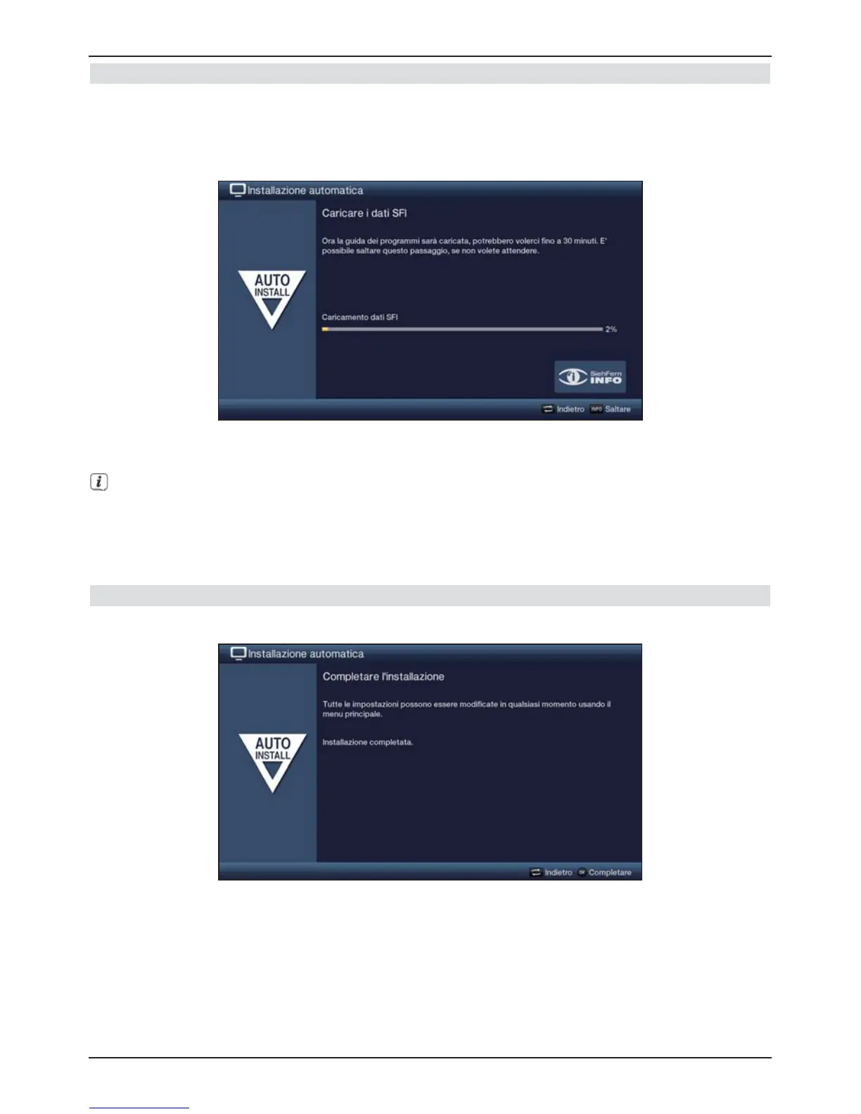 Se si è saltato l'aggiornamento SFI, l'apparecchio carica automaticamente i dati SFI