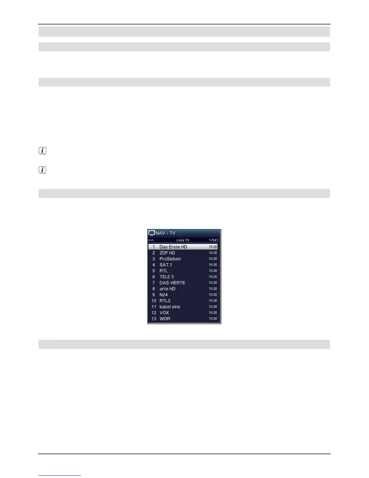 Compare l'elenco dei canali TV in modalità TV e l'elenco dei canali radio in modalità