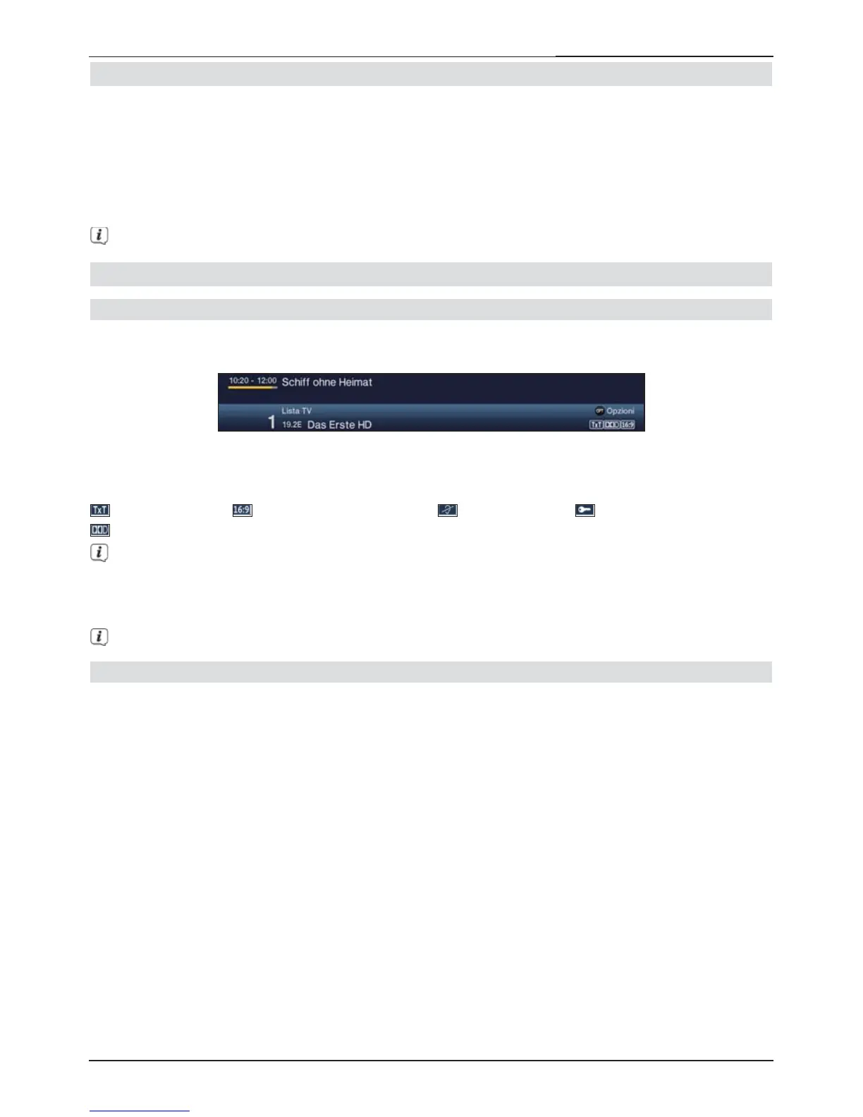 In questo box informazioni compaiono la posizione e il nome del canale, nonché la sorgente