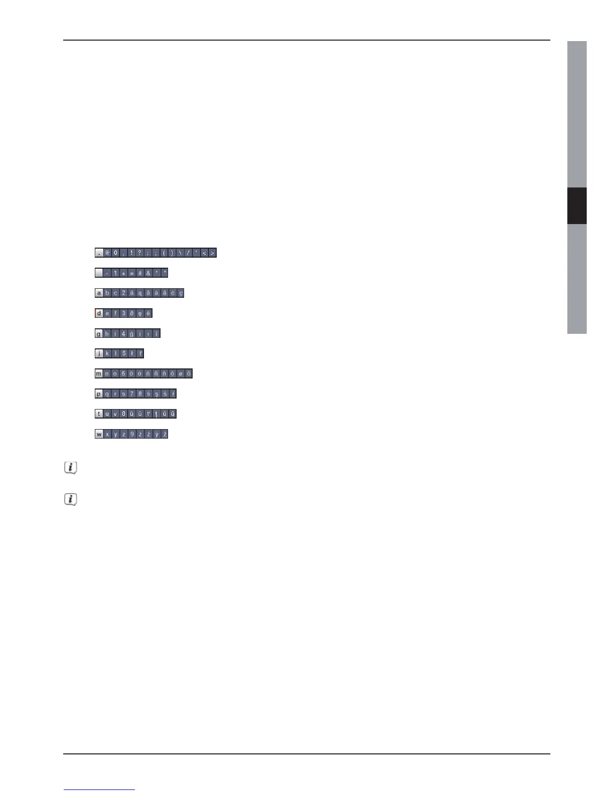 > Druk op een van de cijfertoetsen 0 - 9 om de verschillende letters, cijfers,