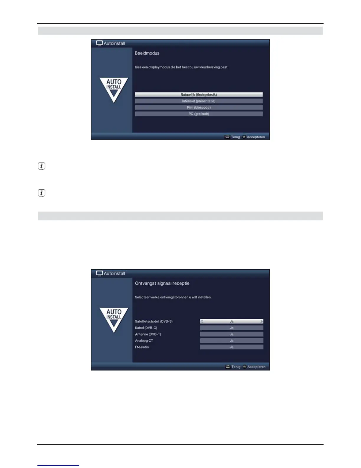 De standaardwaarden van de geselecteerde beeldmodus kunt u na de AutoInstall in het