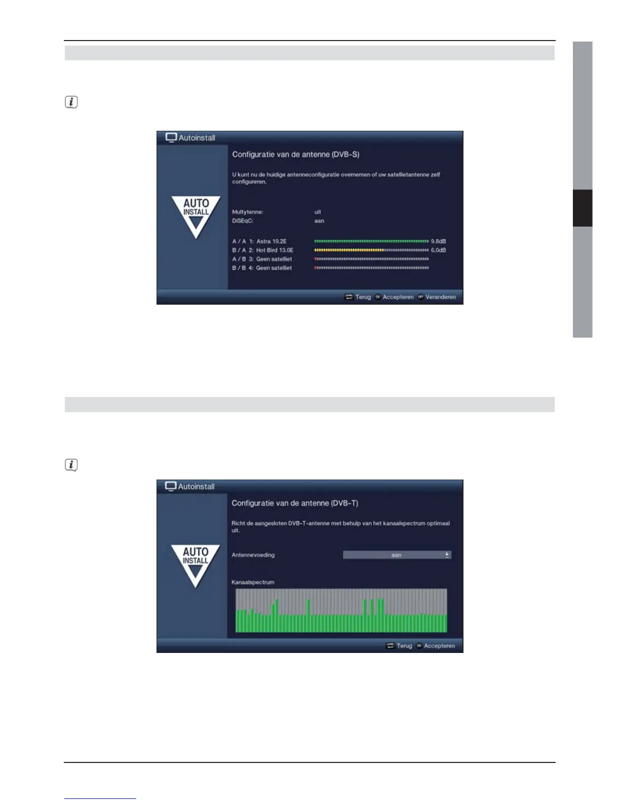 > Als de configuratie van uw ontvangstinstallatie niet overeenkomt met de standaard-