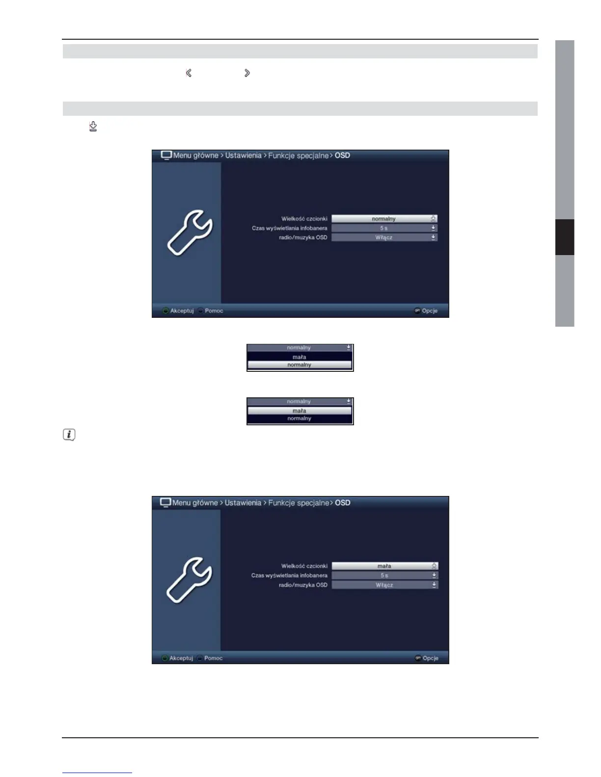 > Przyciskami strzałek w górę / w dół zaznaczyć żądane ustawienie.