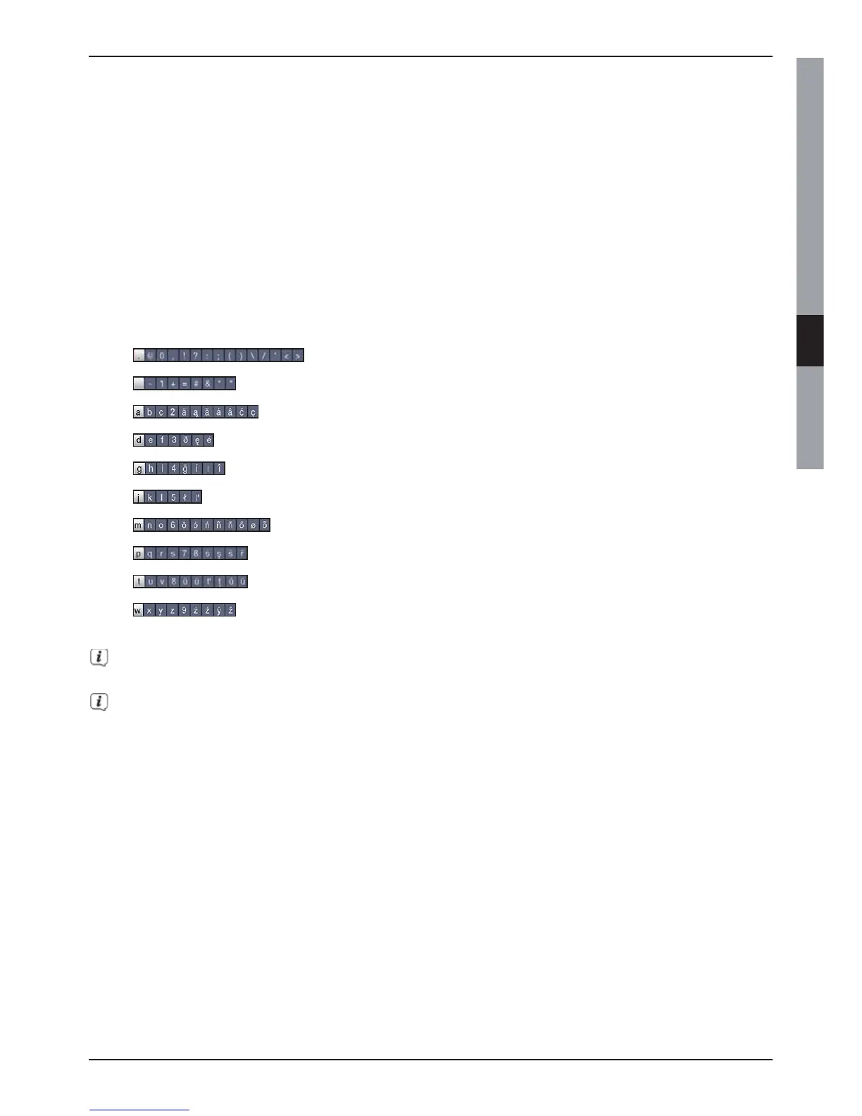 > Naciśnij jeden z przycisków numerycznych 0 - 9, aby wybierać różne litery,