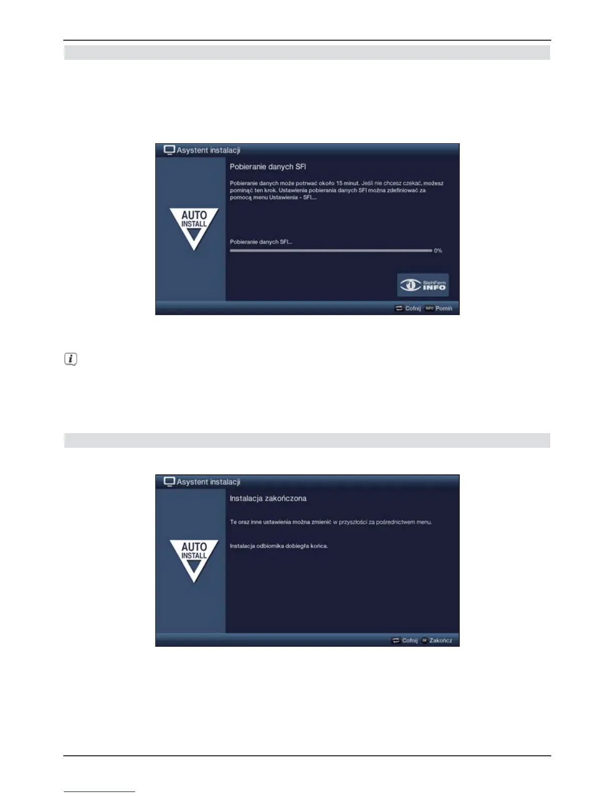 Odbiornik TV automatycznie rozpocznie pobieranie danych SFI po zakończeniu ewentualnej