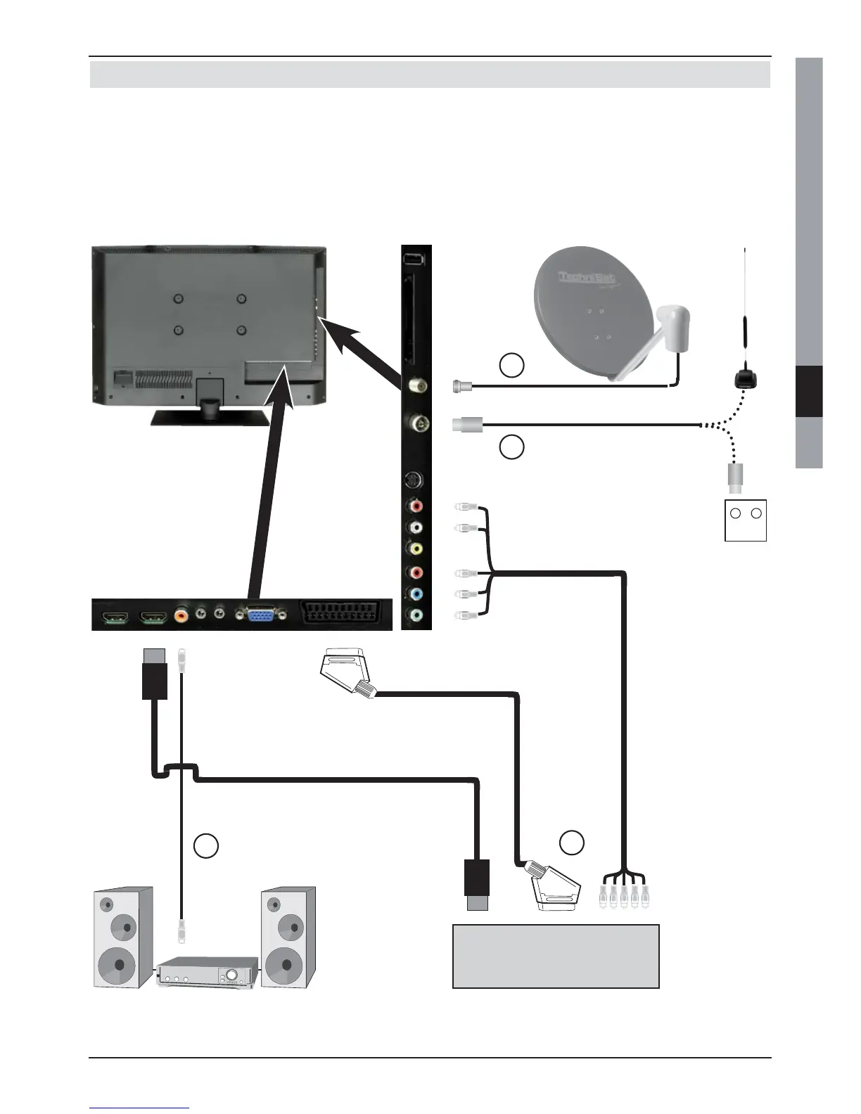 b Připojení kabelové přípojky (digitální a/nebo analogové) nebo antény DVB-T s vstupem
