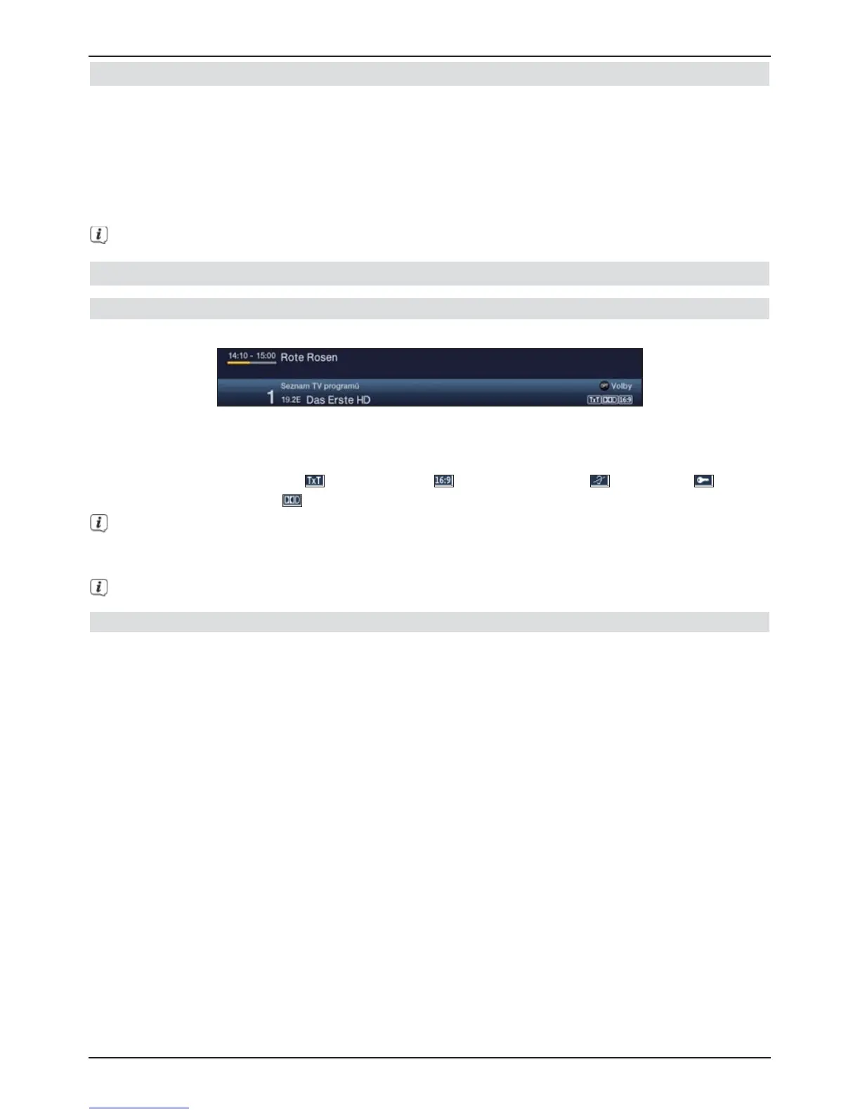 Po každé změně programu se po stanovenou dobu na obrazovce zobrazí Infobox.
