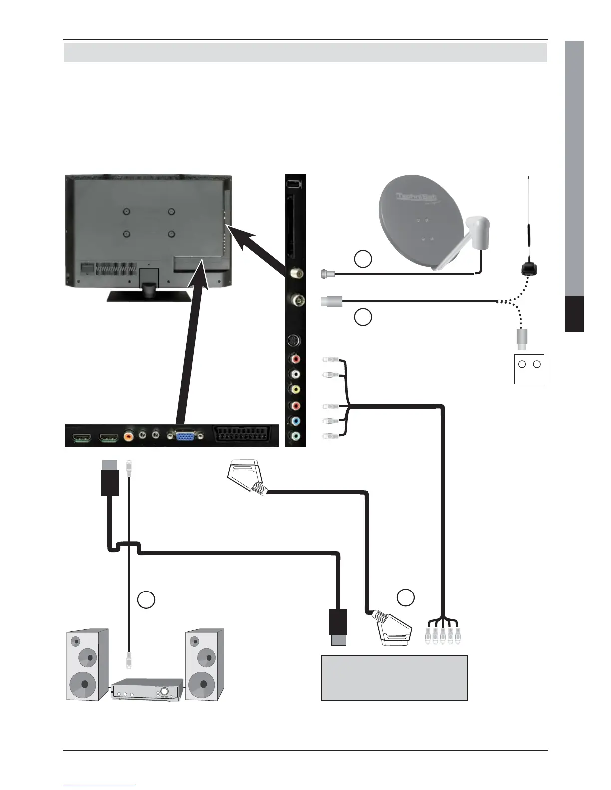 b Kábelcsatlakozó (digitális és/vagy analóg) vagy DVB-T antenna csatlakoztatása a