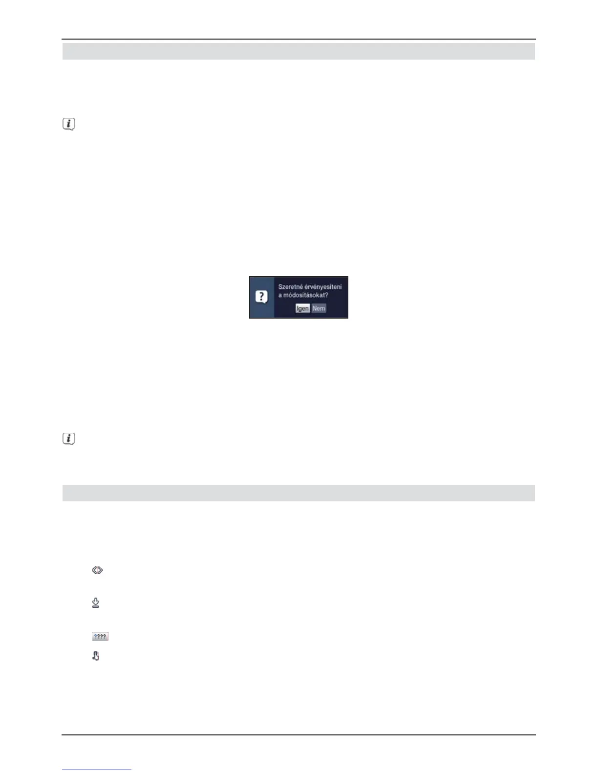 Egyes menüknél és funkcióknál a módosítások tartós mentéséhez manuálisan kell