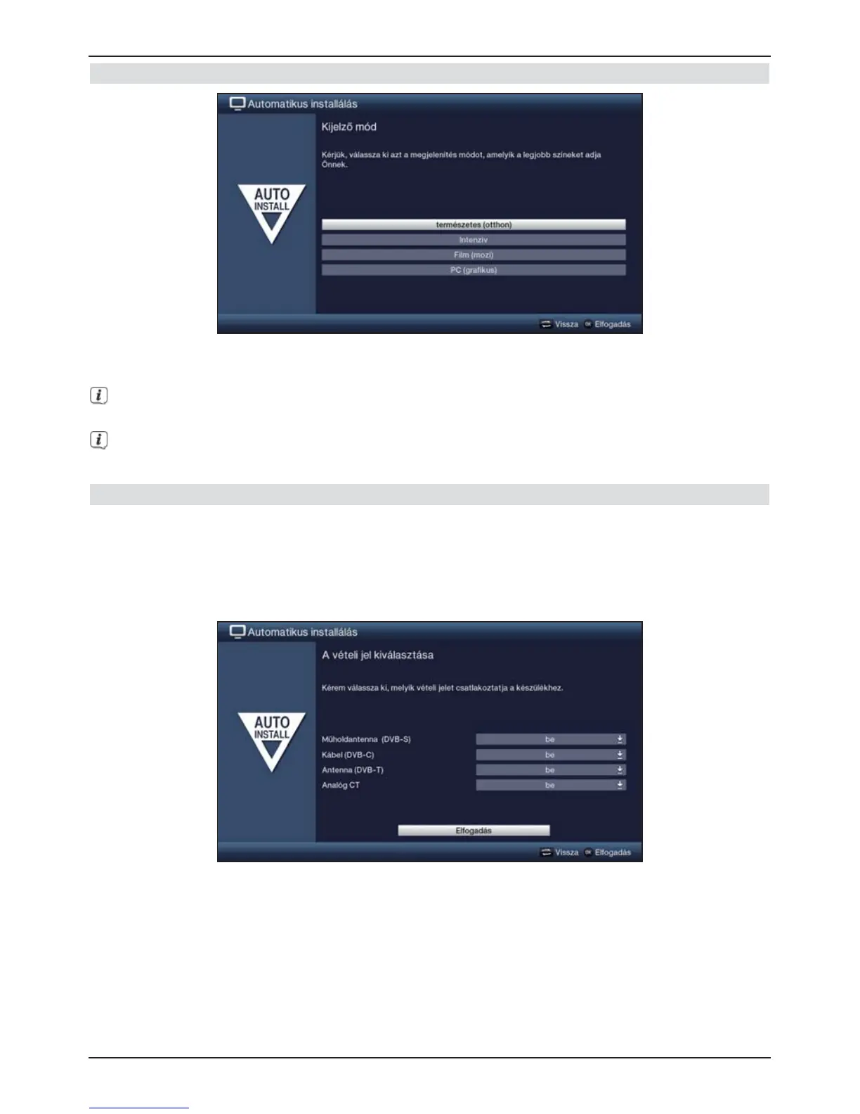 > A fel/le nyílgombokkal választhat a rendelkezésre álló vételi jelek közül. DVB-S