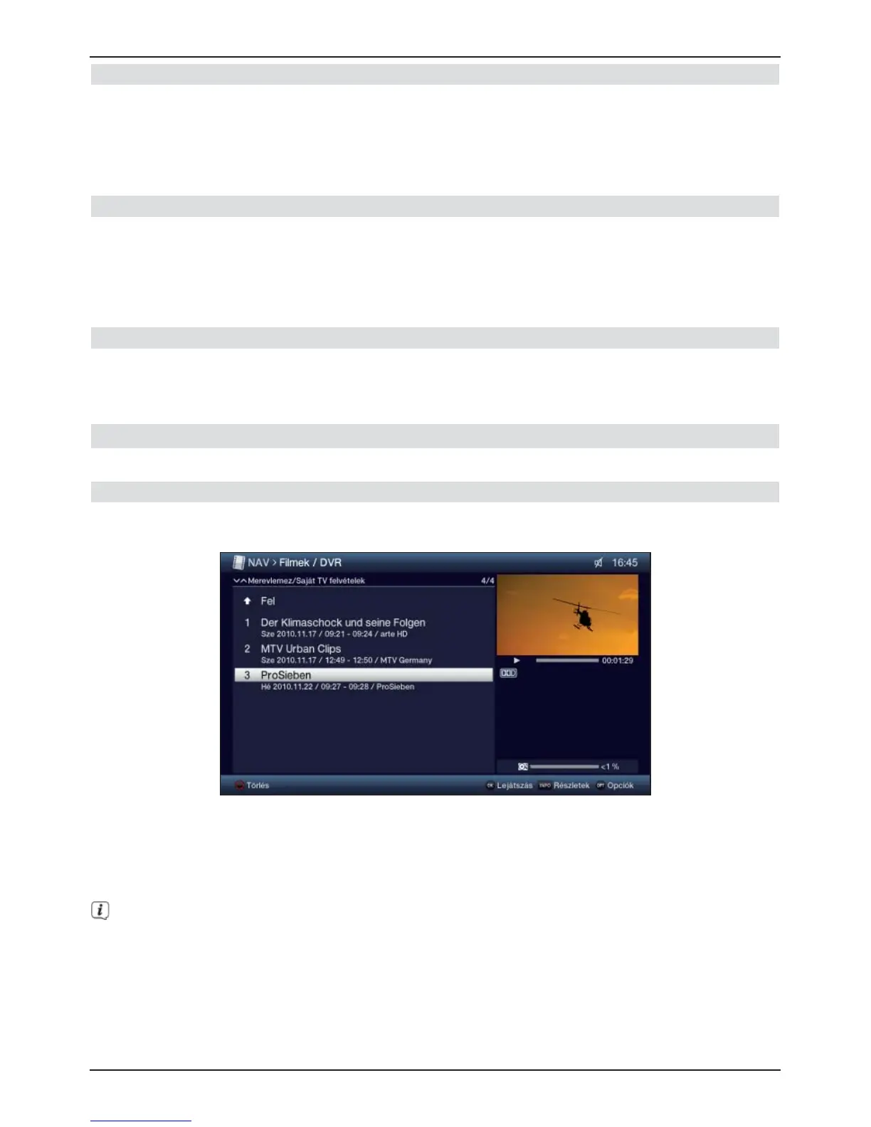 Filmek / DVR gombjának megnyomásával, valamint a Saját felvételek mappa