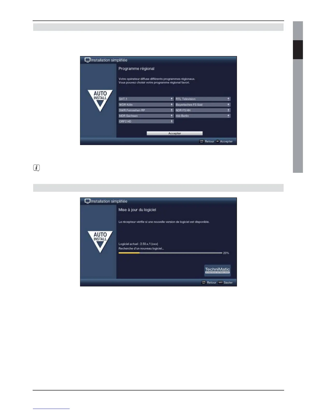 suivante de l’assistant d’installation en appuyant sur la touche OK.