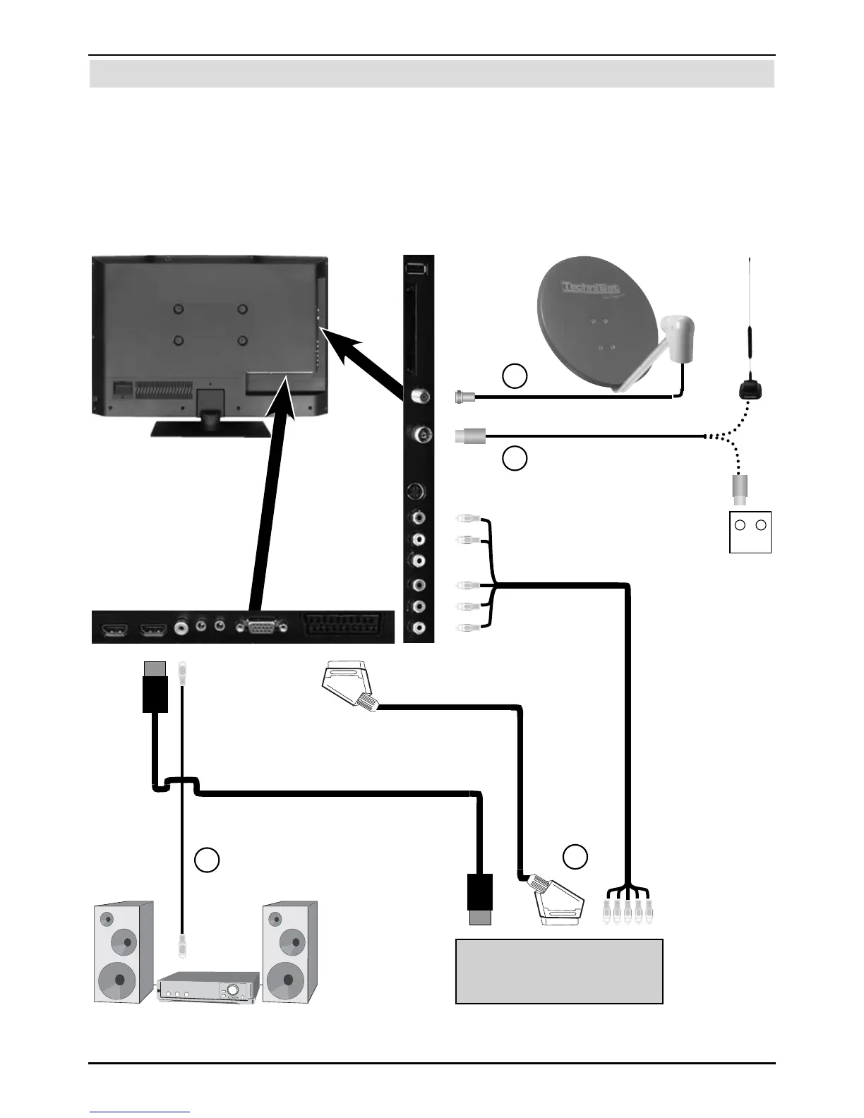 b Connecting the cable connection (digital and/or analogue) or the DVB-T antenna to the