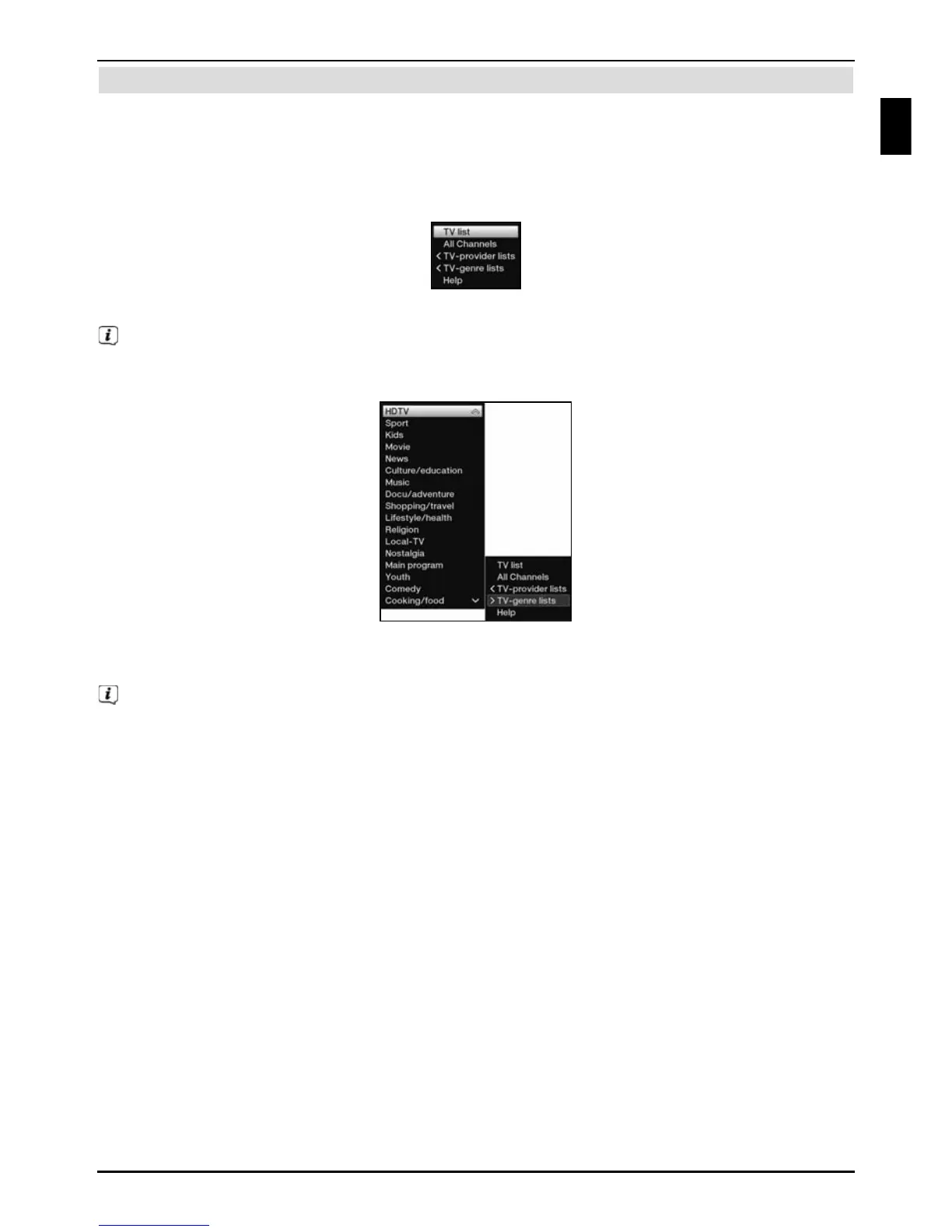 You have the option in some menus and operating modes (e.g. TV mode, music/images