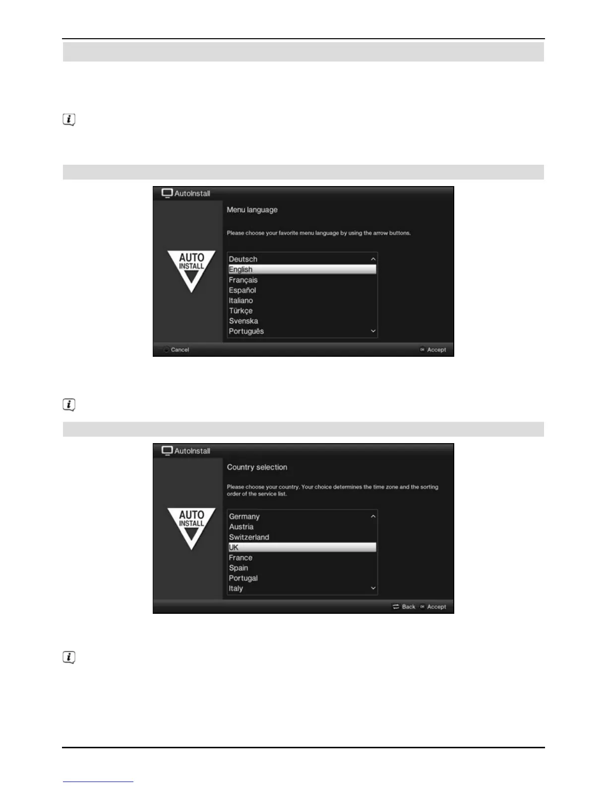 On initial installation of the TV, the installation wizard starts AutoInstall automatically.
