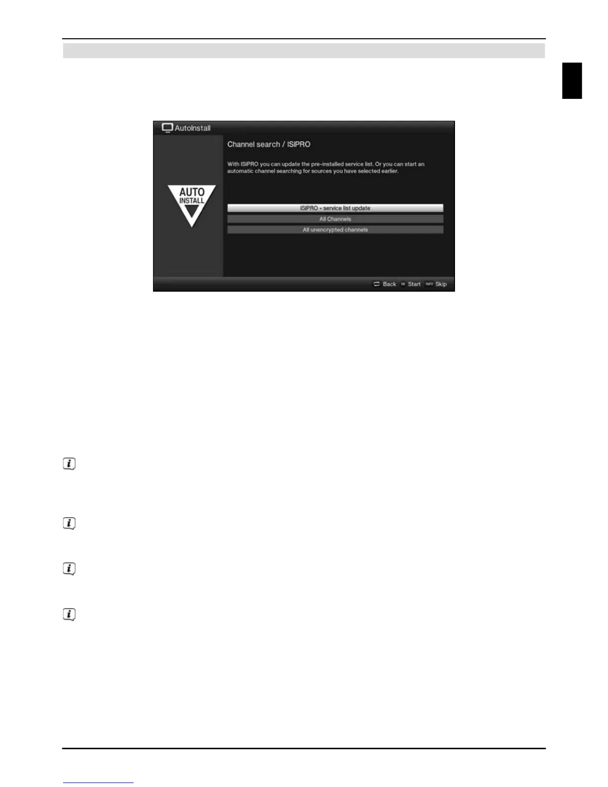 When using All channels, free-to-receive and encrypted channels are searched for;