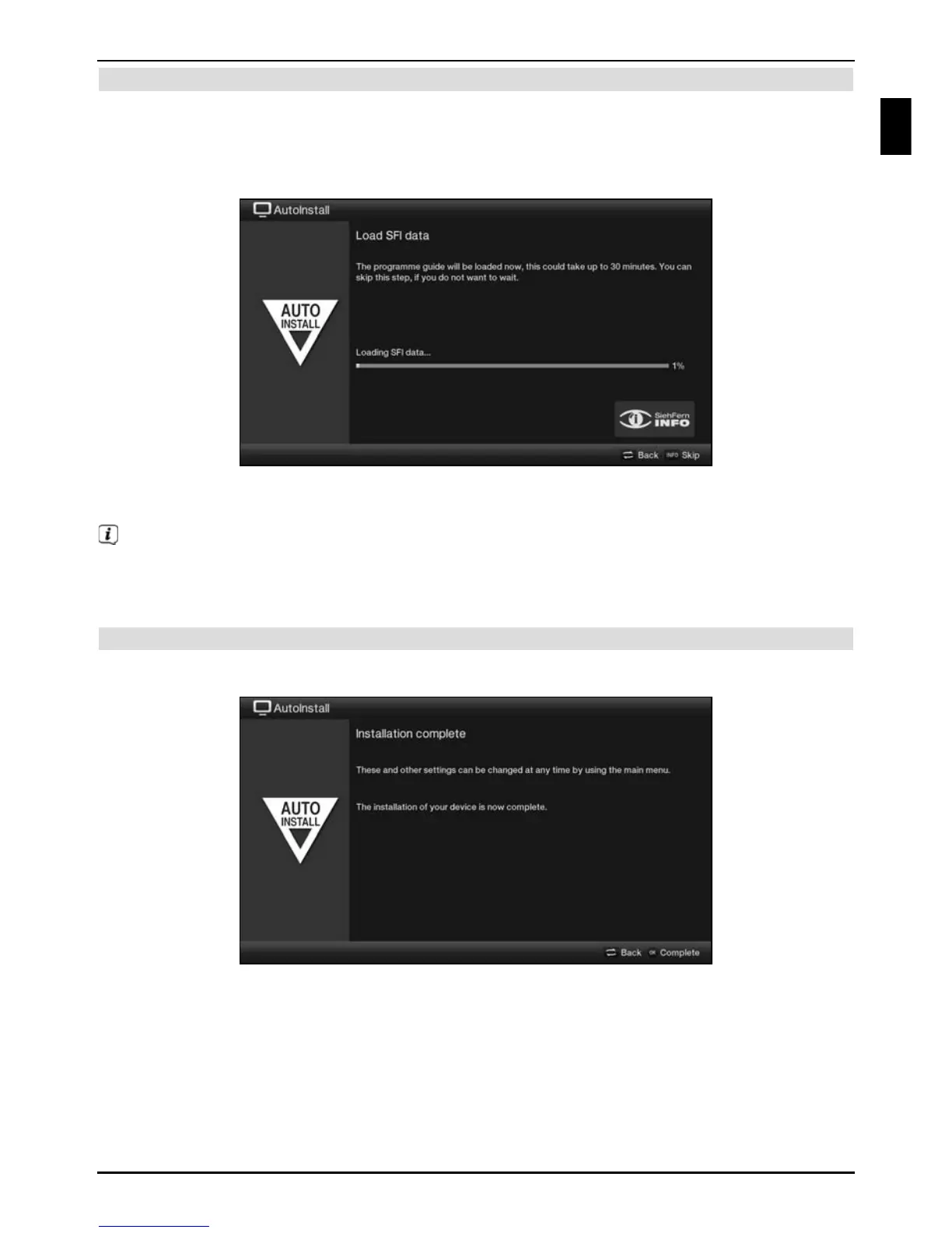 To do this, your TV automatically starts downloading the SFI data as soon as any software
