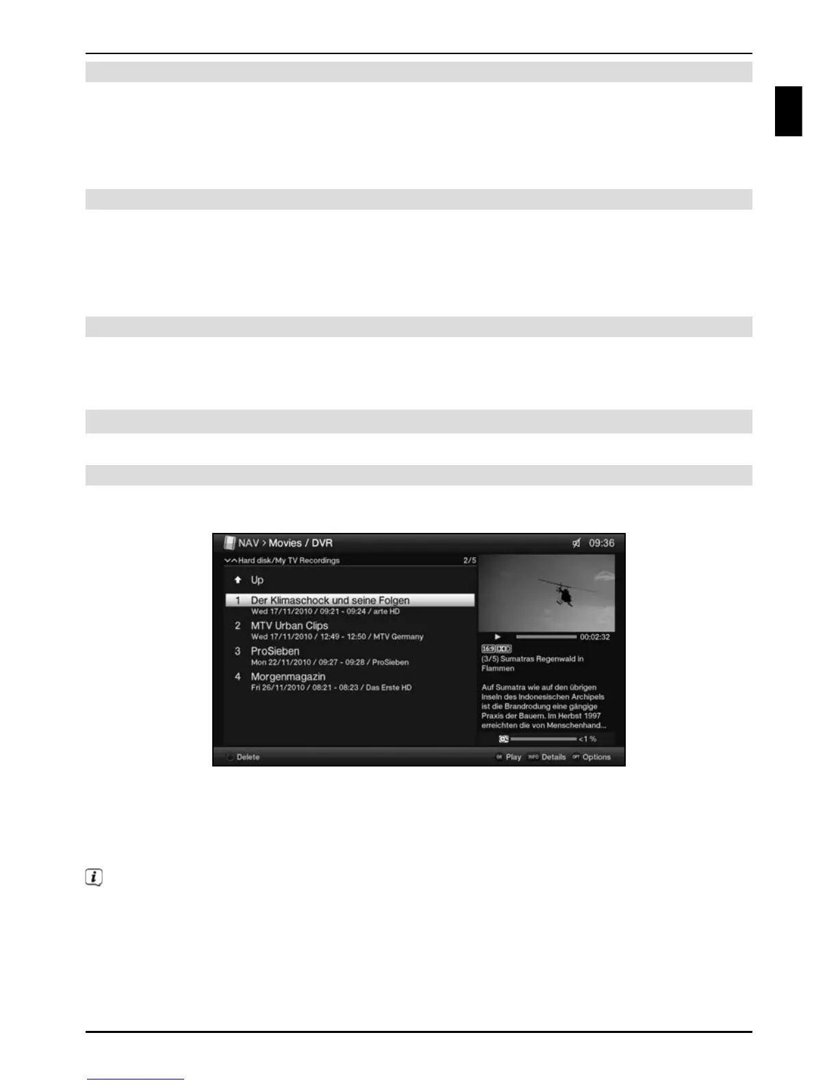 > Highlight the recording you want and confirm with OK to begin playback.