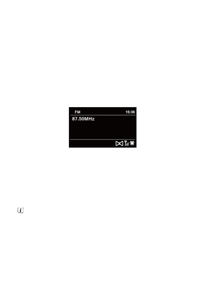 To select the FM mode, press the MODE button until [FM Radio] appears in the display.