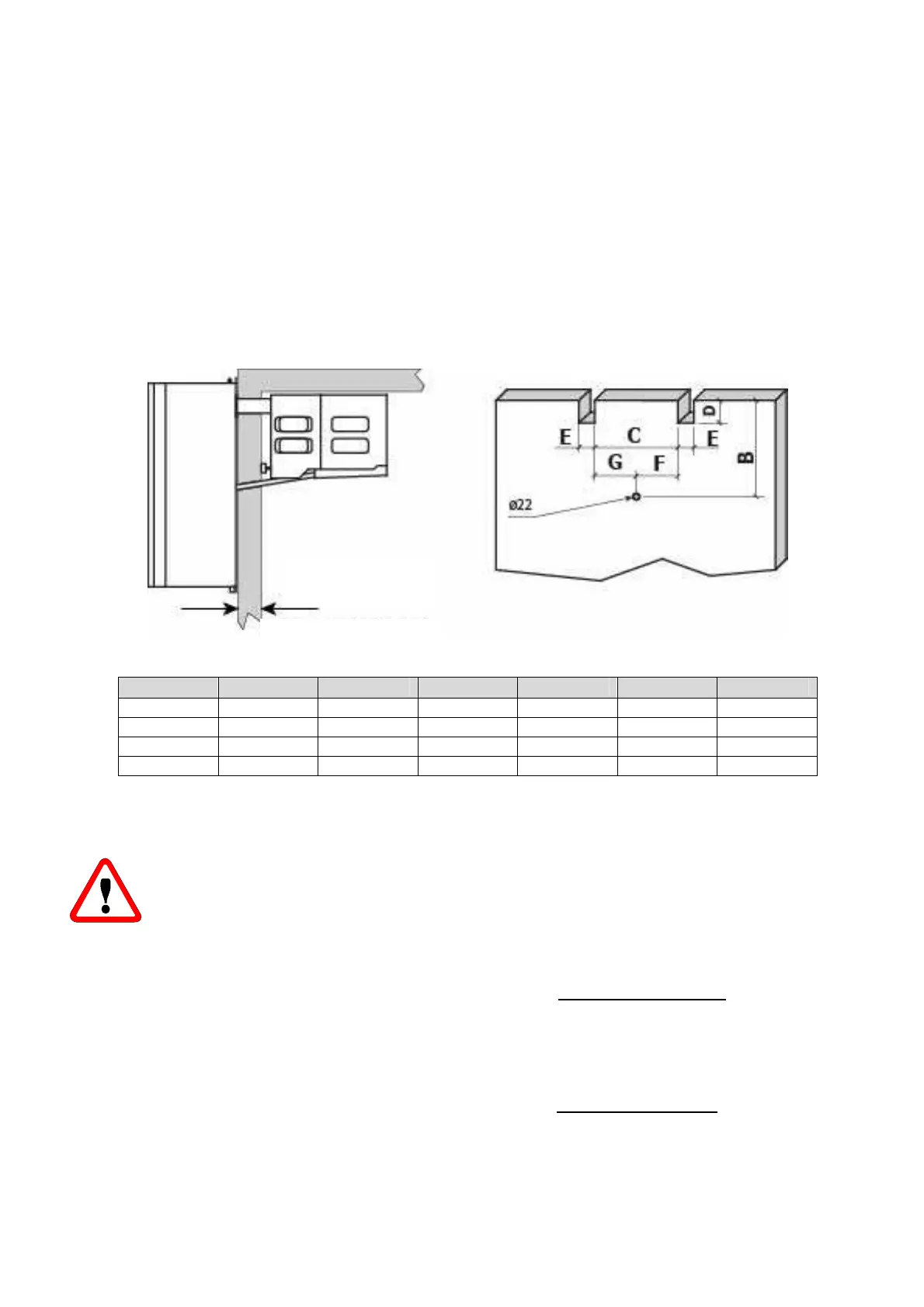 Antes de colocar el equipo, hay que realizar unos cortes y agujeros en la cámara como indica la figura. Sujete el