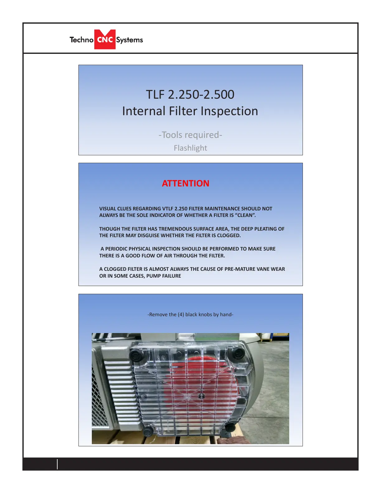 VISUAL CLUES REGARDING VTLF 2.250 FILTER MAINTENANCE SHOULD NOT