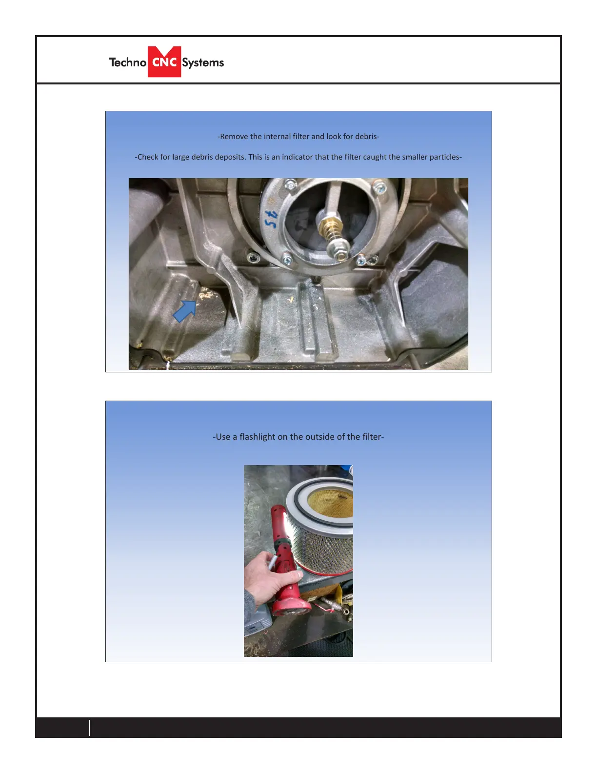 -Check for large debris deposits. This is an indicator that the filter caught the smaller particles-