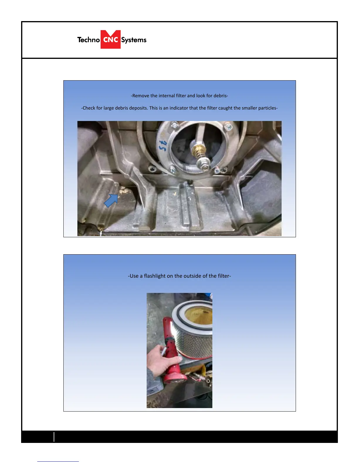 -Check for large debris deposits. This is an indicator that the filter caught the smaller particles-