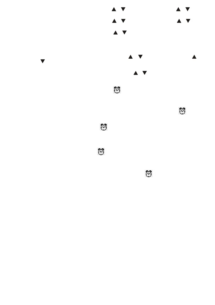 1. Press and hold ALM ON-OFF until the hour digit flash. Then press or to set alarm hours. Press and hold