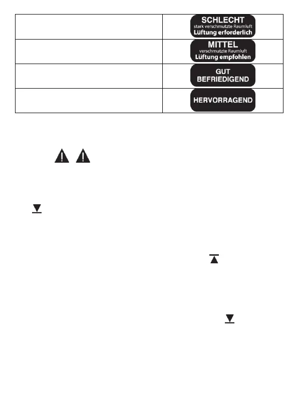 Les icônes clignotent lorsque le CO2 actuel dépasse 2000 ppm.