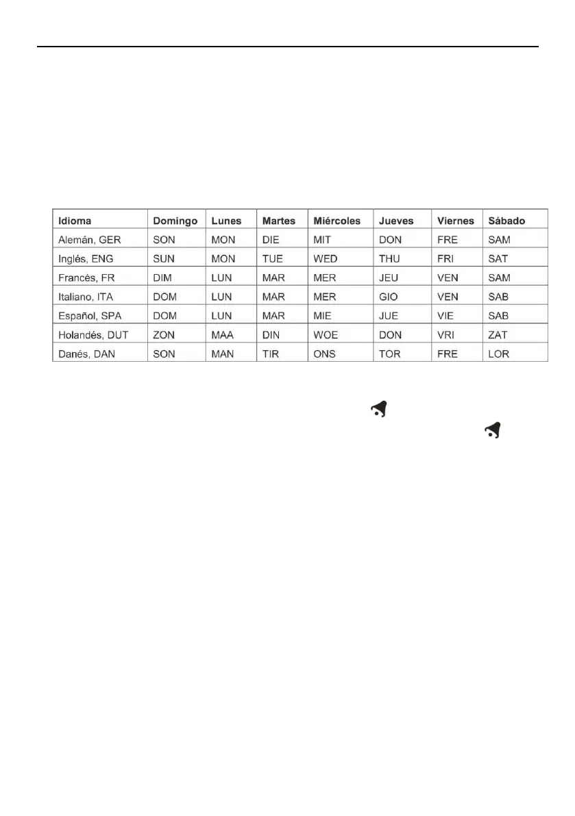 día de la semana empieza a parpadear. Ahora use los botones “+” “-” para seleccionar un idioma.