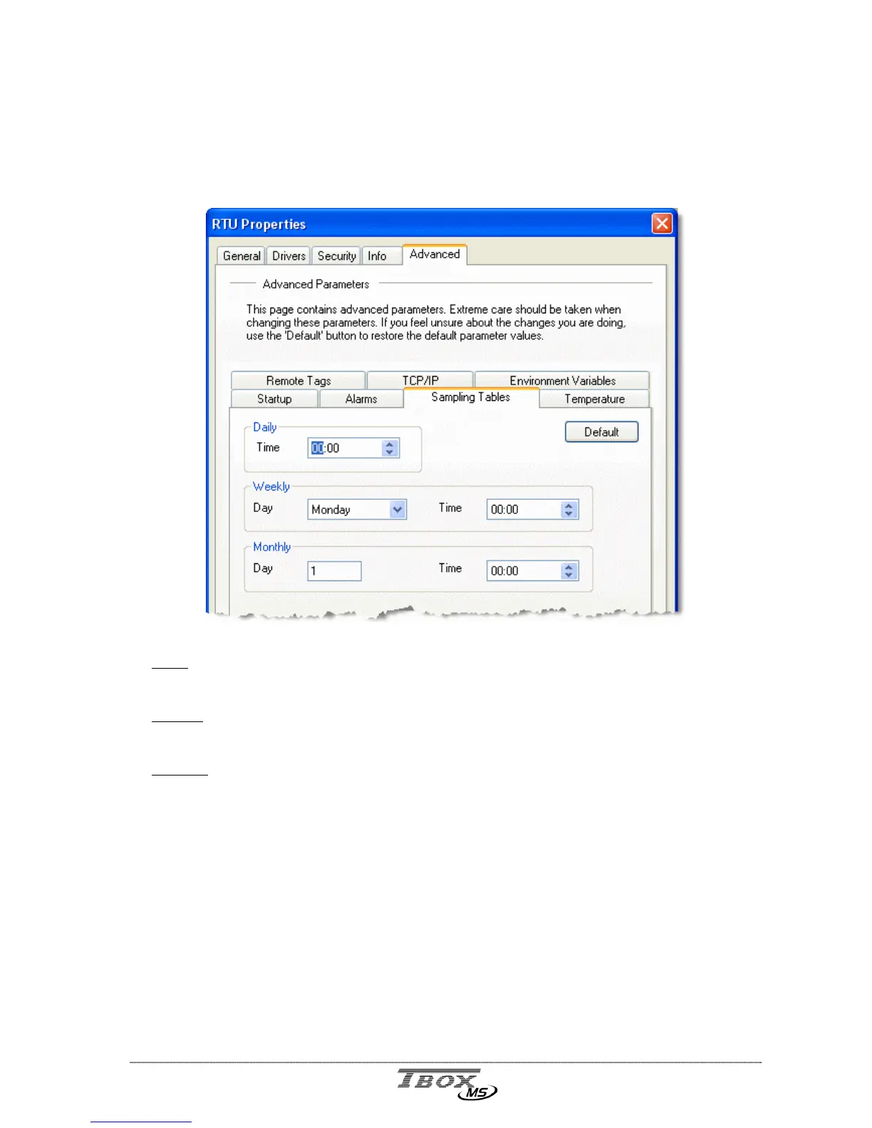 When ‘weekly’ is selected in sampling table, it is the day of the week and the time