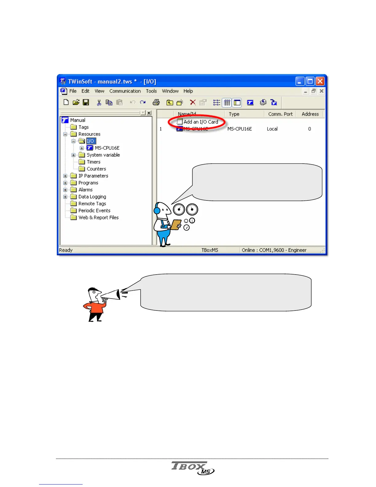 All cards other than the CPU must be added in the ‘Resources’ folder: I/O cards as well as