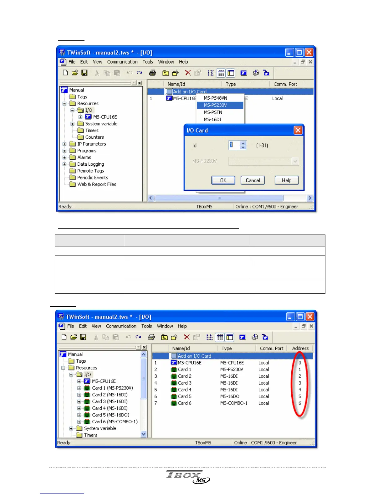 Type of Card Slot used in the Rack Address in TWinSoft