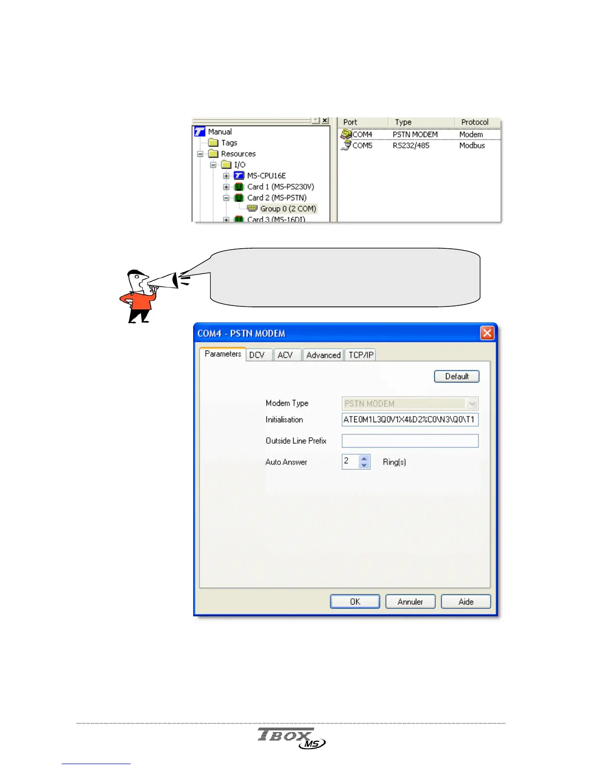 A modem card (PSTN or GSM) is composed of a modem and a serial port (RS232 or RS485).