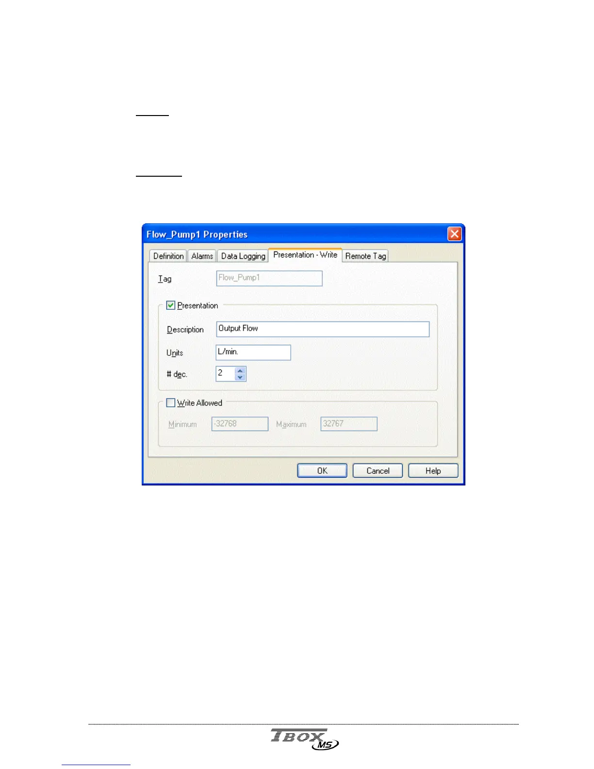 Write allowed: if the Tag is declared in a WebForm, allows defining a writing access to the