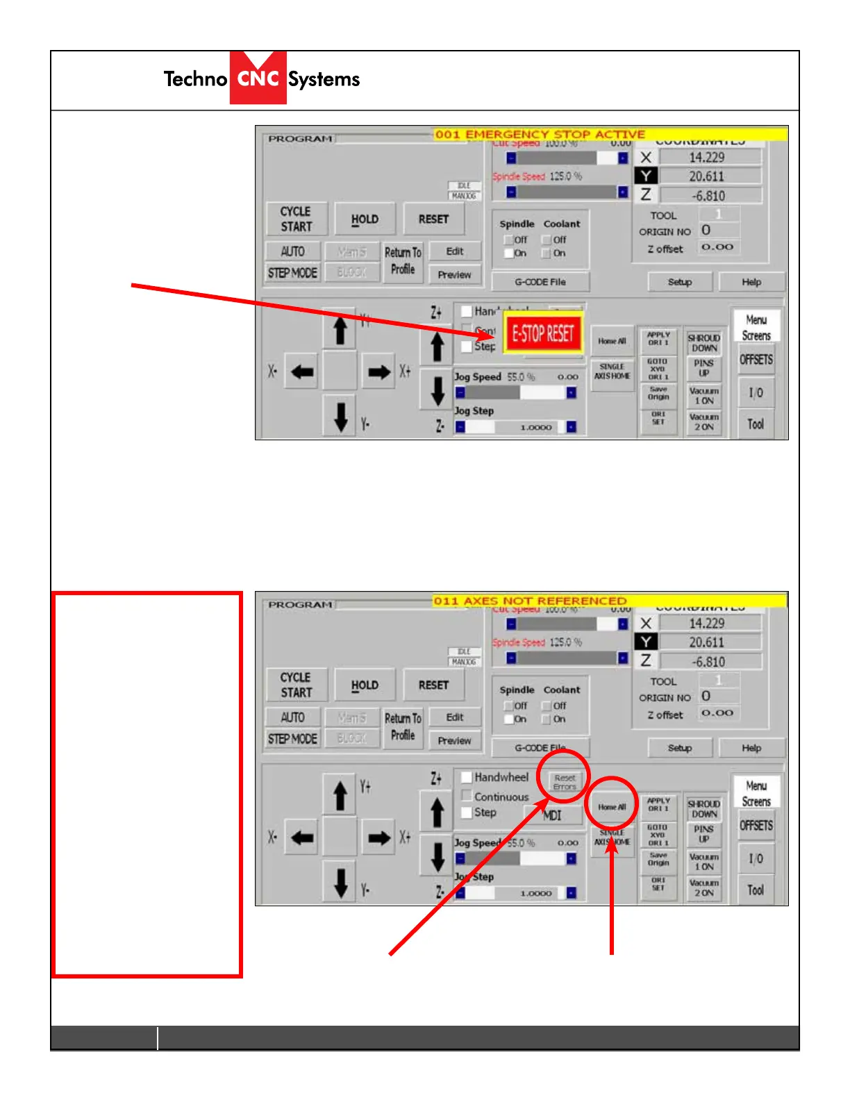 Air Pressure,) rectify the problem and click on “Reset Errors” or “RESET” to remove the message.