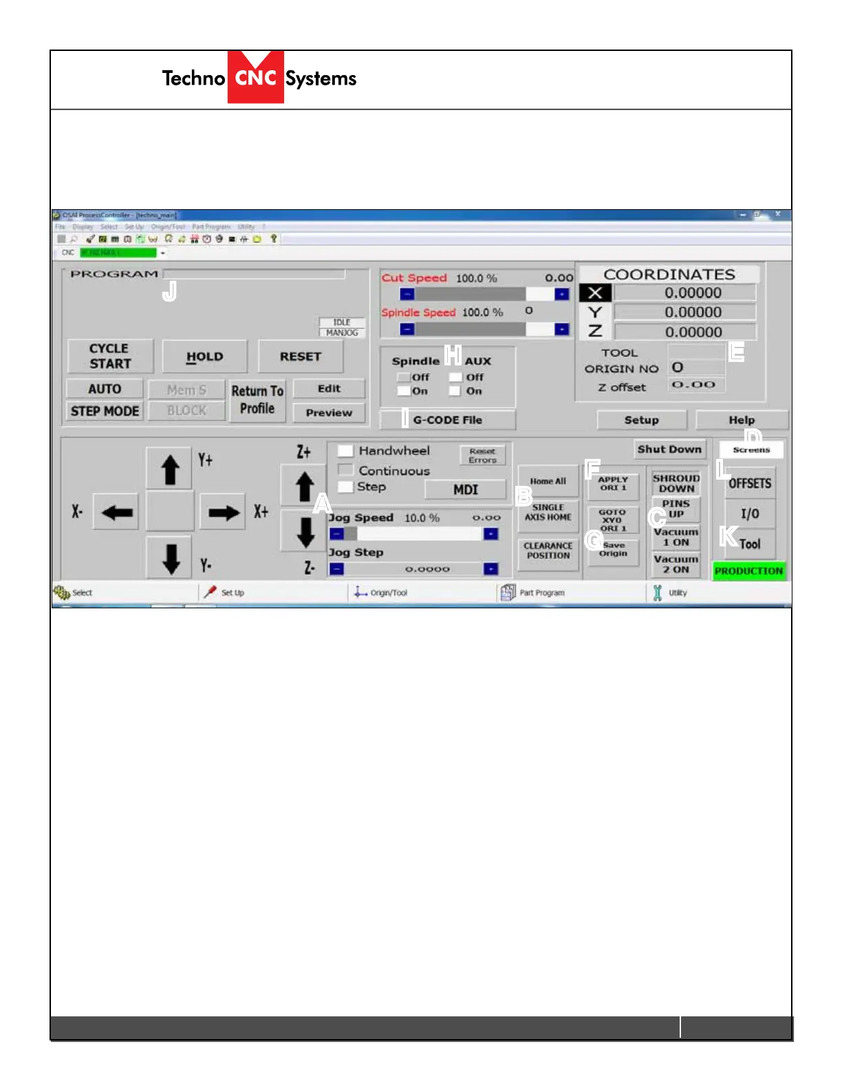 Techno HDS Series - Machine Interface and Controls; Screen Layout and Elements Overview