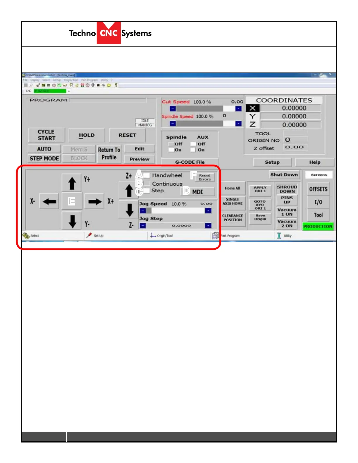 The sections highlighted below are the Jog controls of the interface.