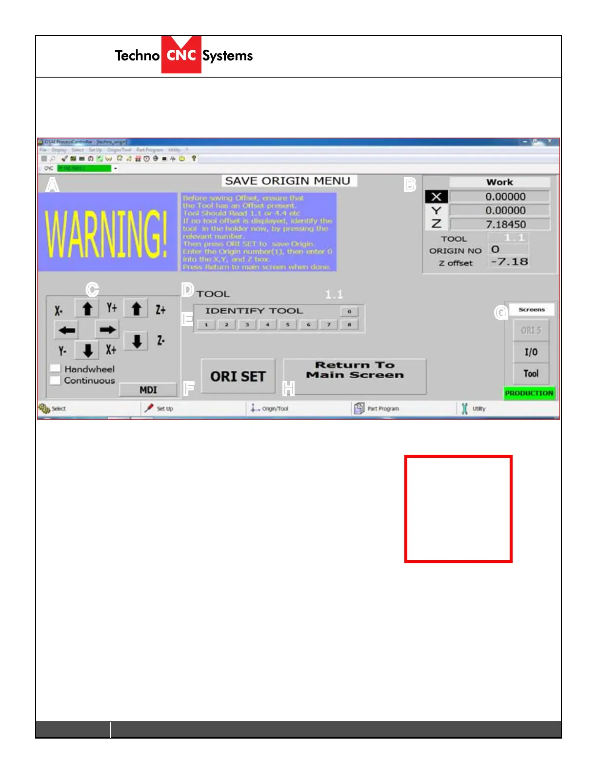 Will open the Origin Preset Screen where the user will enter the Origin number to be saved and set XYZ to zero.