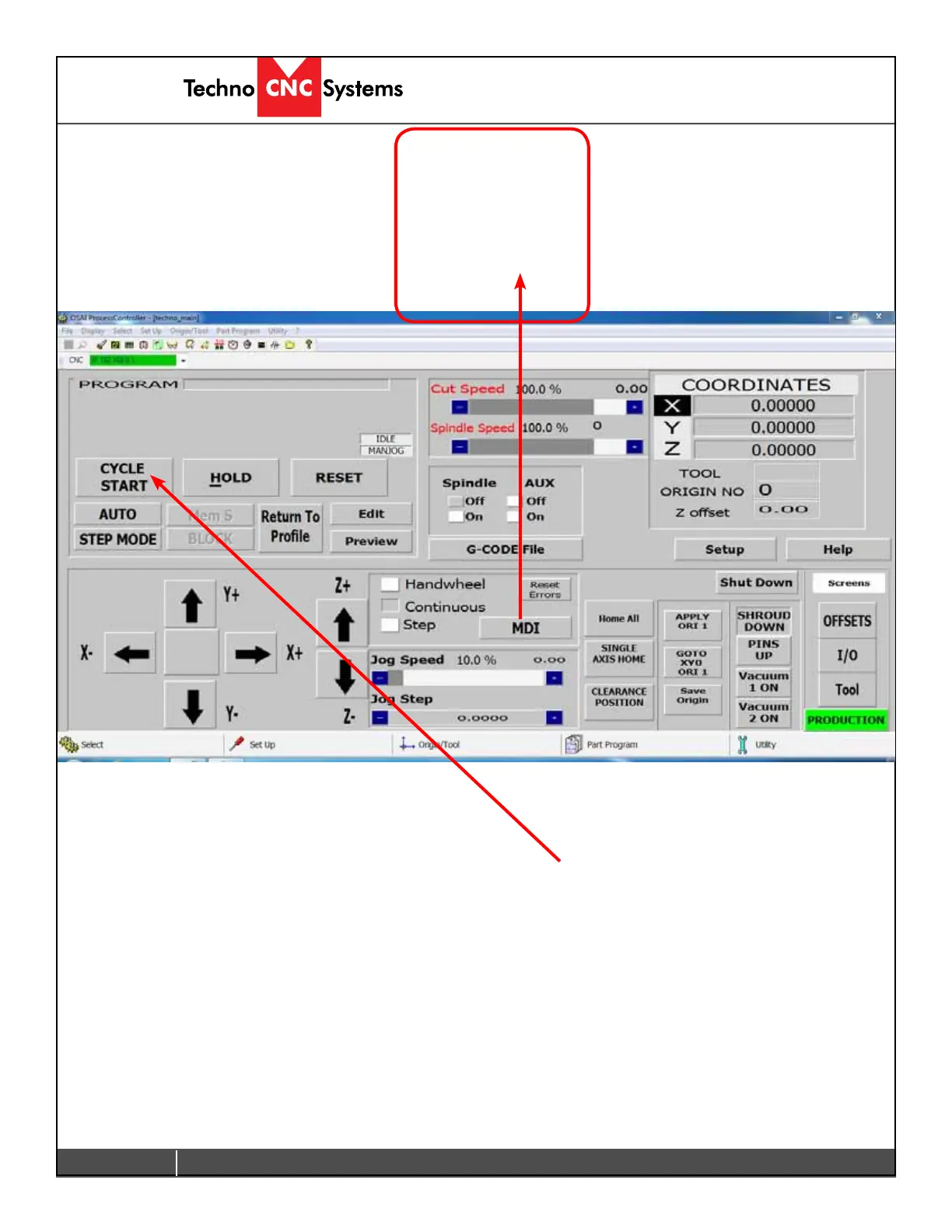 Jog box. MDI.
