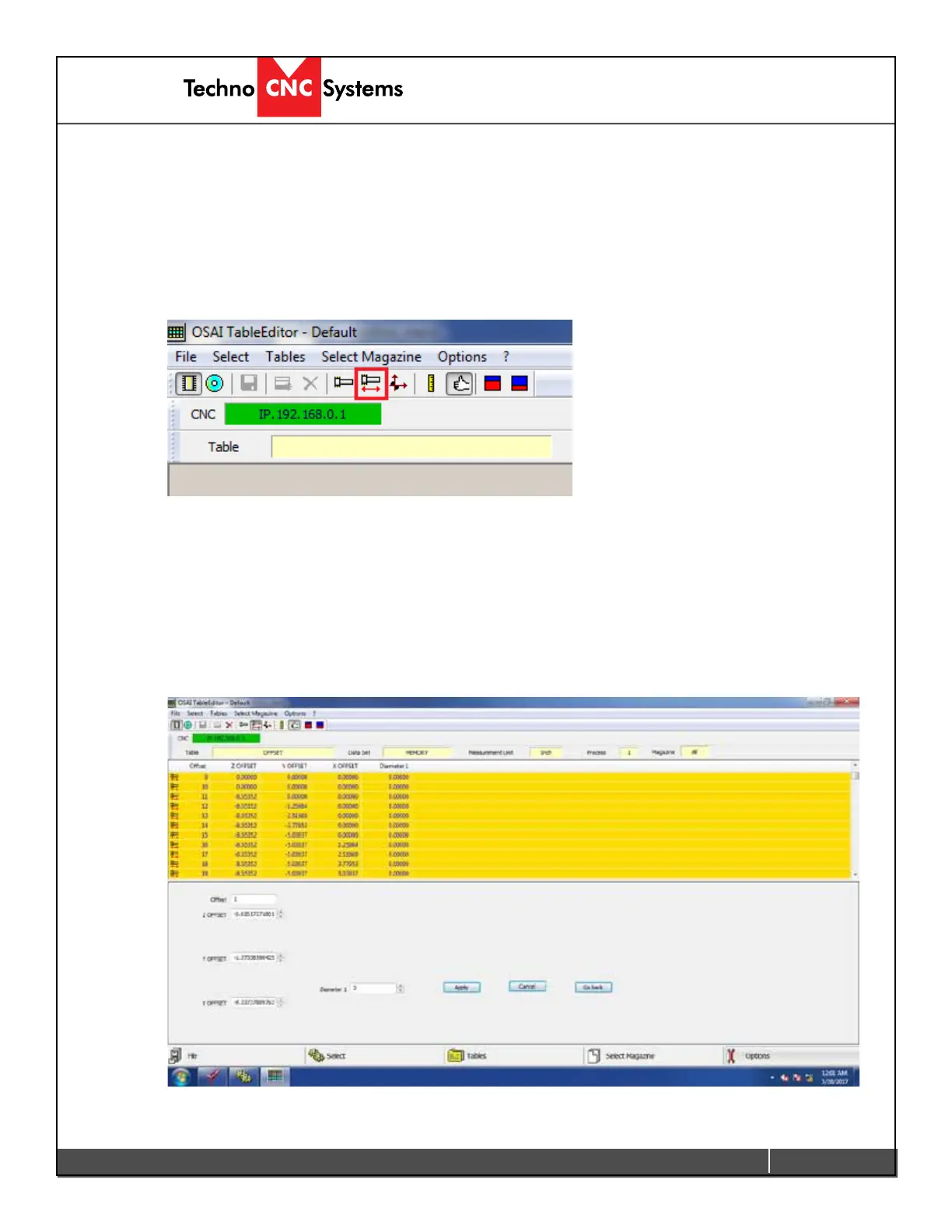4. This will now show the “Tool Offsets” in a yellow table. You can see the tool