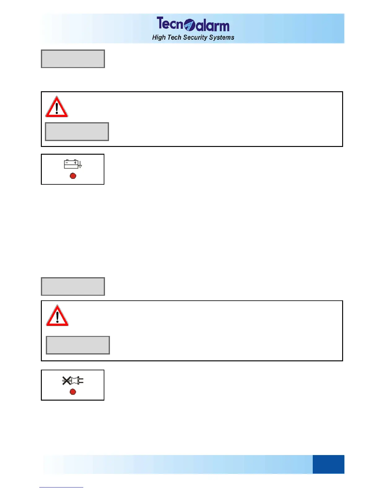 section). In all the other cases, if you try to arm the control panel, on the display is