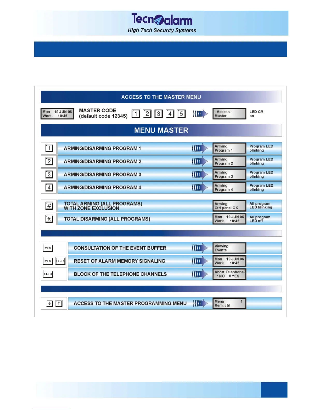 Technoalarm TP4-20 - Master Menu